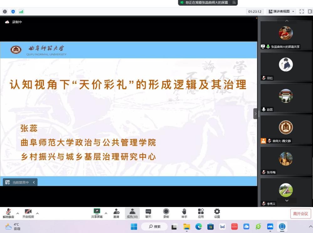 在兩次線下調(diào)研期間,實踐隊的隊員們還利用騰訊會議進行工作的總結(jié)和整理工作,在會議上,隊員們各抒己見,將各自的調(diào)研收獲進行分享討論。同時,實踐隊的隊員充分利用網(wǎng)絡(luò)資源,在指導(dǎo)老師的推薦下閱讀了多篇關(guān)于彩禮的論文,加深了對天價彩禮這一現(xiàn)象的認(rèn)識,從論文中學(xué)習(xí)到了研究天價彩禮的多個視角。實踐隊的隊員們還聆聽了2022年泰山學(xué)術(shù)論壇“鄉(xiāng)村振興與基層治理現(xiàn)代化”學(xué)術(shù)研討會論壇三,從天價彩禮的形成邏輯角度進一步加深了對天價彩禮的認(rèn)知,本次論壇給實踐隊的隊員們帶來很多新的思考和啟發(fā)。