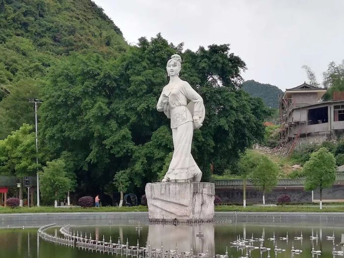 當日下午,實踐隊隊員來到宜州區劉三姐紀念廣場,深入探索儒家文化和家鄉文化的共通之處。實踐隊隊員先參觀了劉三姐像,了解劉三姐的故事。結合上午在路邊護欄上所刻的劉三姐歌謠,實踐隊員發現儒家文化與劉三姐文化的共通之處就是都對“義”有追求。劉三姐心中有“義”,因為心中的“義”,她勇敢同地主階級進行斗爭。就像孔子說的一個人要堅守道義,劉三姐堅守了她心中的“義”。