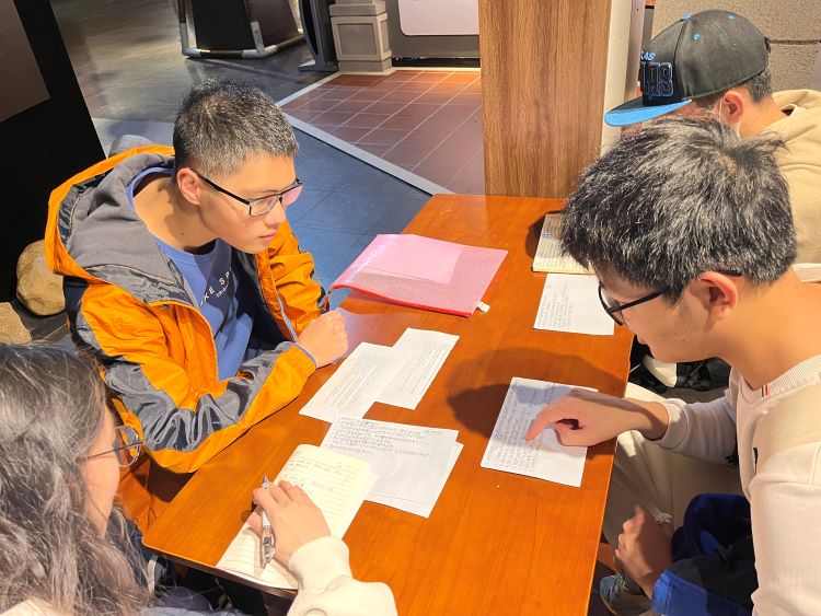 實踐團成員商量采訪事宜(左圖) 實踐團到訪茶坑村(右圖)