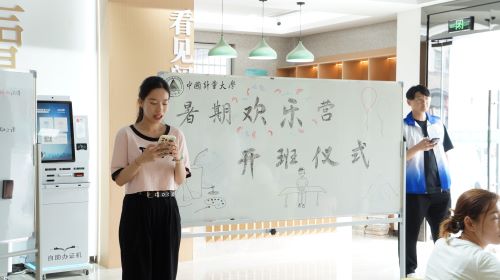 于下午兩點,鏡海社區(qū)暑期歡樂營開班儀式在負責人梁老師的簽到點名聲和小朋友們的歡笑聲中正式開始。