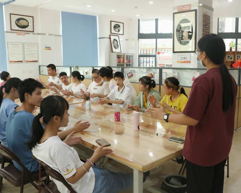 在一個小時的教學后,小伙伴順利完成了前30s的手語操的學習,他們微微上揚的眼角和如同蜜棗般甜蜜的笑容都讓小隊成員真切的感受到與他們的距離開始縮短,這只是我們與殘疾人朋友熟悉的第一步,卻是我們真正走進殘疾人生活的一大步。
