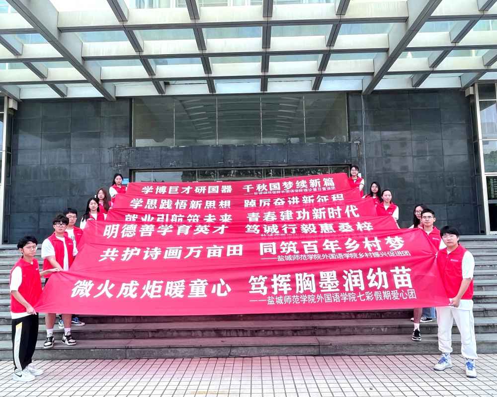 6月21日,鹽城師范學院外國語學院七彩假期愛心團出征暨授旗儀式在主樓A面舉行。本次活動邀請了外國語學院黨政領導和各年級輔導員的參加,社會實踐團隊的成員代表也積極參與并聆聽老師指導。