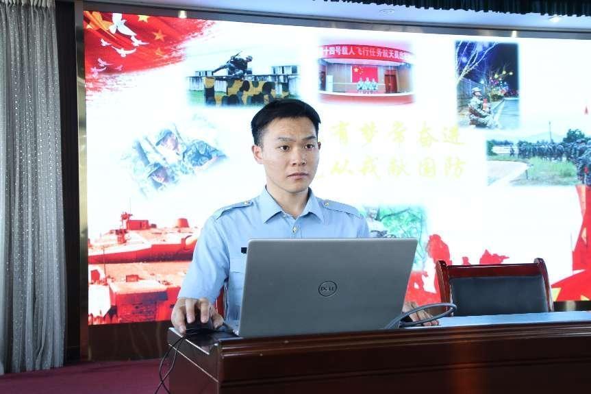 活動(dòng)伊始,首先由團(tuán)隊(duì)成員柳宇勇用生動(dòng)的語言為大家傳授國防知識(shí)、宣講國防經(jīng)典案例,一個(gè)個(gè)故事引發(fā)了學(xué)生們的濃厚興趣。深入淺出的講解展現(xiàn)我國國防的歷史背景、現(xiàn)狀及其在建設(shè)中國特色社會(huì)主義事業(yè)中的重要作用,幫助學(xué)生們了解基本的國防理論和軍事知識(shí),樹立居安思危的國防觀念,增強(qiáng)愛黨、愛國、愛軍情感。一張張炫彩奪目的武器裝備照片、一個(gè)個(gè)感人肺腑的紅色故事、一句句飽滿真情的寄語,不斷地激勵(lì)著學(xué)生們熱愛祖國,熱愛國防,立志成為國家棟梁之材。