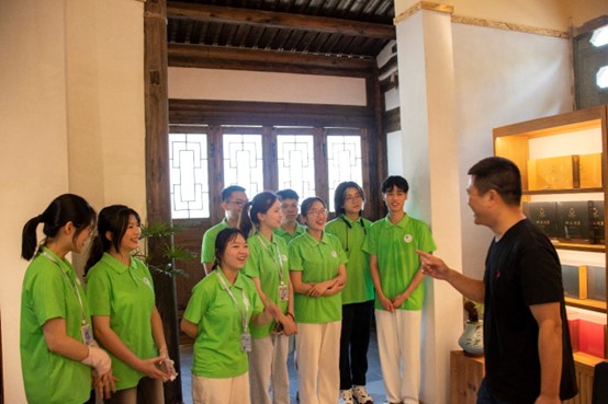 隨后,隊伍來到皇龍社,這是一家由來自武夷山的茶企與侯官當地合作的茶莊,熱心的老板向隊員們詳細地介紹了一些茗茶的來歷和屬性,并歡迎大家閑暇時可以來茶莊歇歇腳,喝喝茶。