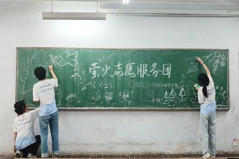圖為團隊成員繪制板報。通訊員 楊馨怡 供圖