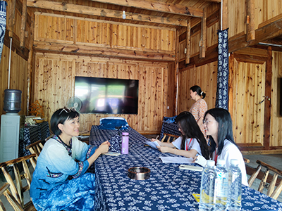在采訪十八洞村蠟染世家的李女士時,她表示:小時候一直在湘西農村里生活,很喜歡湘西的風情文化,所以大學期間便由醫學專業轉到旅游管理專業。傳承和宣傳家鄉文化,是有一種使命感在心里面的,剛開始去了旅行社,早教老師等等,多次就業經歷之后,一次偶然機會來到了十八洞村做蠟染生意。隨后李女士還和團隊分享了許多在這里的感受和經歷,并表示在未來將會繼續將這些傳統文化傳承下去,與當地村民互惠互利,共創美好未來。