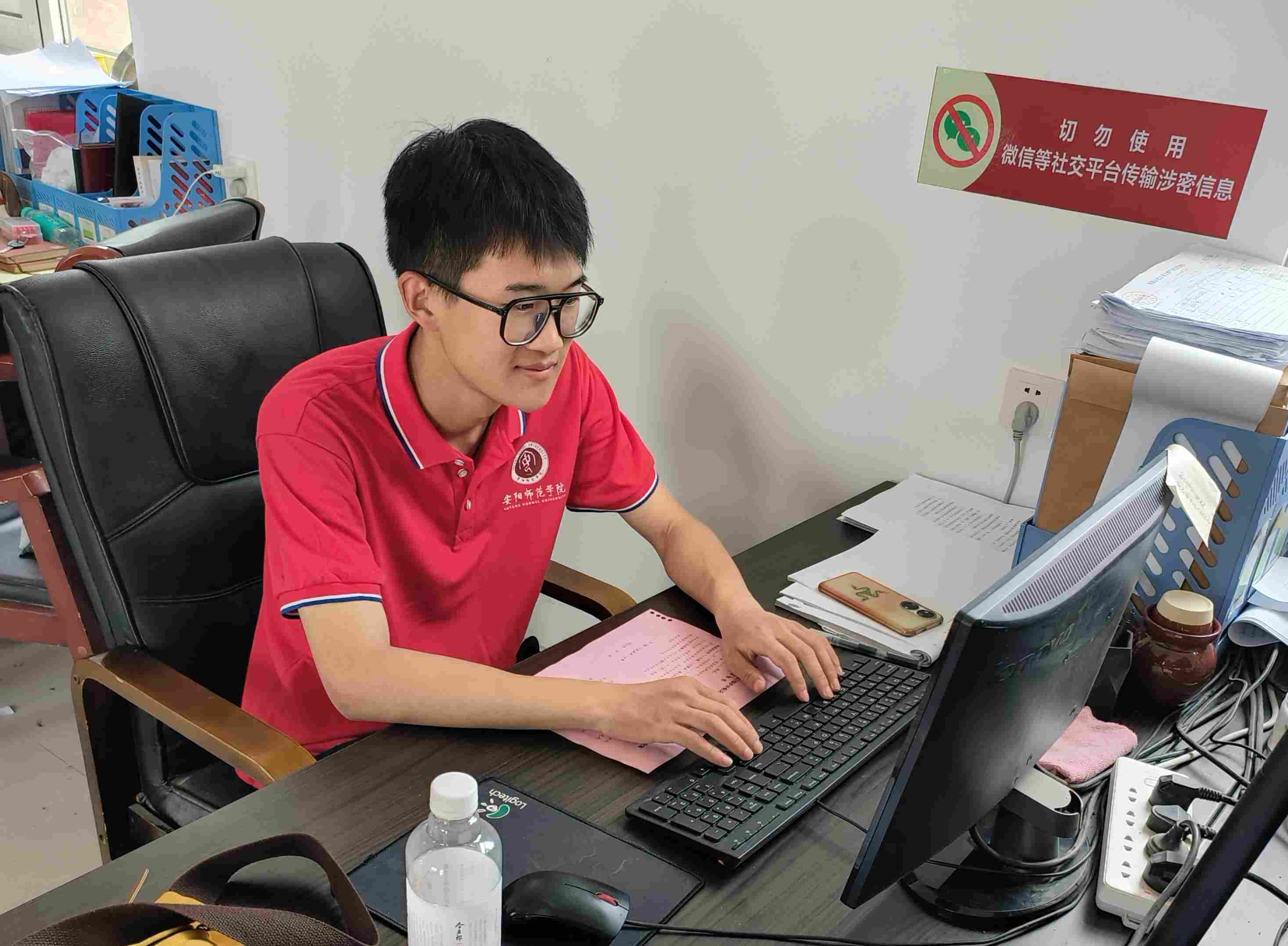 (圖為實踐團成員楊振輝在海通鄉(xiāng)人民政府辦公室進行工作)