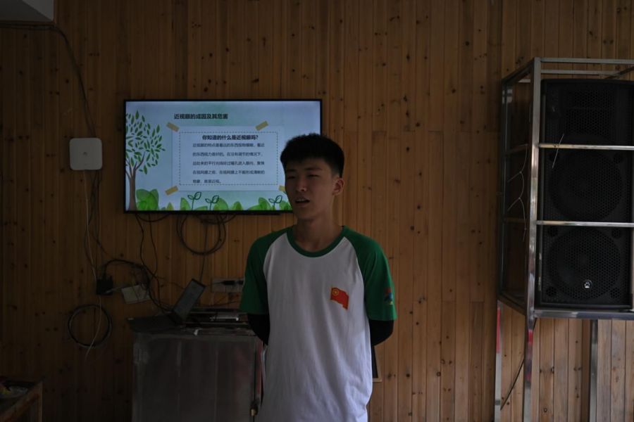 “我們要端正書寫姿勢(shì),控制閱讀時(shí)間,定期檢查視力”,志愿者老師李志鵬向小朋友們講述道,“平時(shí)要多注意休息,少看電視、手機(jī),做好近視眼的預(yù)防工作。”課程最后,李志鵬帶領(lǐng)小朋友們跟隨音樂一起做眼保健操。