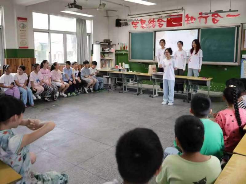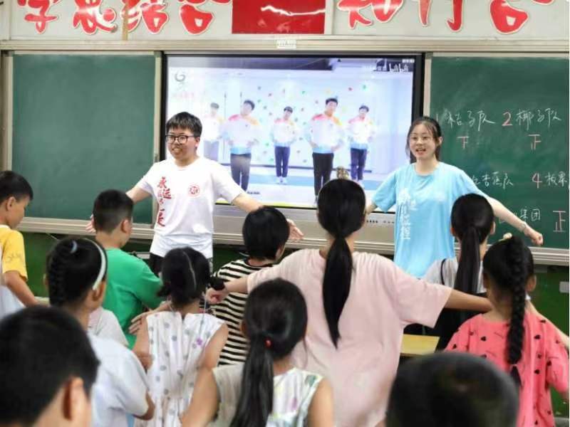 通過趣味破冰游戲,激發(fā)了小朋友們的熱情,拉近了彼此的距離。實踐團隊的小老師們還帶來了一段激勵人心的舞蹈表演。舞蹈教育是一門“功夫活”,教易而育難。實踐團隊的小老師們不僅是為了讓孩子們學會舞蹈動作,更是希望鼓舞他們追求自己的夢想,即使不能達到月亮,也能在群星之間閃耀。