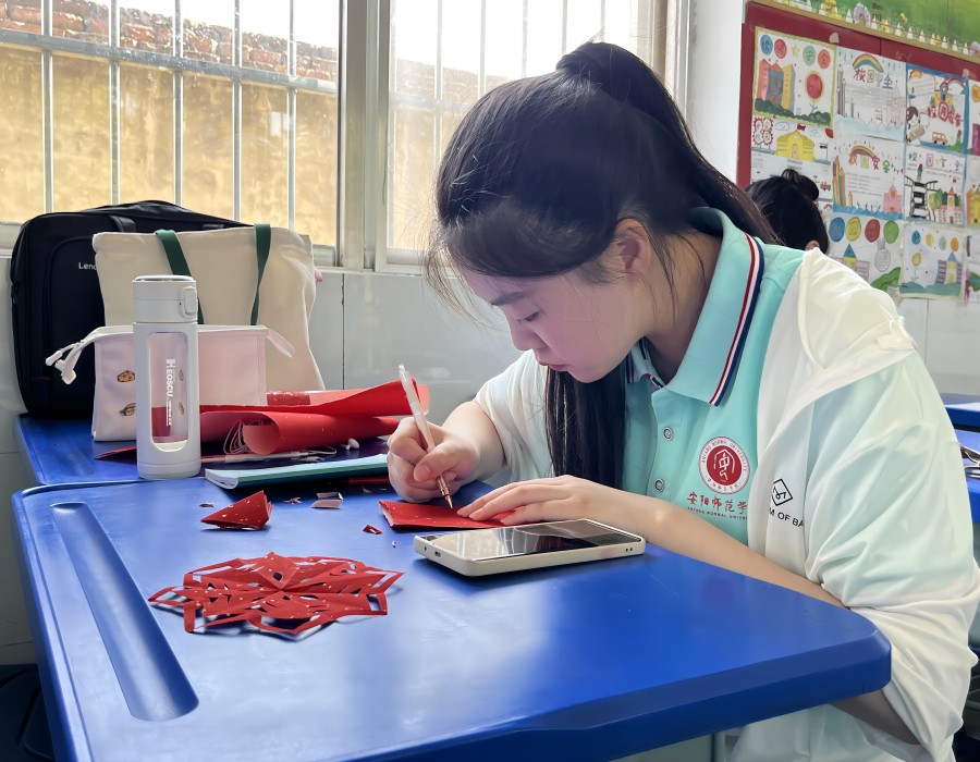 安陽師范學院文學院“童心向黨,筑夢成長”豫才鄉村振興推普支教隊成員為非遺傳承注入青春活力,點亮中華優秀傳統文化的“長明燈”,讓中華優秀傳統文化在農村未成年人中,“走進來”“請進來”“傳下去”,厚植文化自信之根,展現優秀傳統之美。