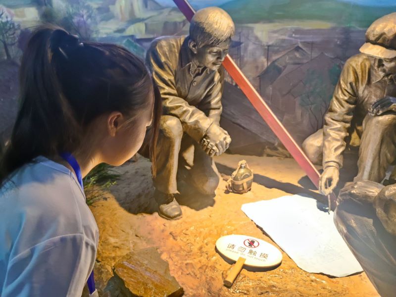 圖為團隊成員參觀先輩們刻苦工作的銅像,為先輩們不畏艱險,一心奉獻的精神感到震撼。中國青年網通訊員 李傲 攝