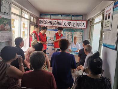 7月7日下午,實踐活動在七街衛生室開展,首先志愿者們根據當地醫生提供的患有傳染病老人的隨訪報告,向老人們講解了他們的健康狀態、相關慢性病情況。隨后,實踐團隊員們以實際病例為鑒,向老人們悉心講解防治傳染病的方法和預防措施,發放宣傳折頁和小禮品,同時以健康知識問卷和互動問答等形式,進一步加深老年人對傳染病防治知識的認知。最后,實踐團隊員們按照醫生培訓的聽診器和血壓儀使用規范,為到場的老人們進行義務血壓測量活動,用行動將健康理念送到老人身邊,提高了老年群體自我防病意識