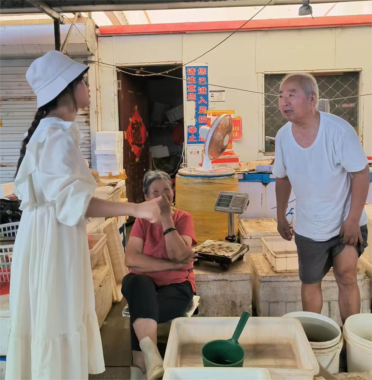 7月8日,調研團隊興致勃勃地前往當地有名的朱蓬口海鮮批發市場,對擺攤的商販進行了采訪。通過交流,調研團隊初步了解到擺攤和電商銷售在市場中的不同占比。