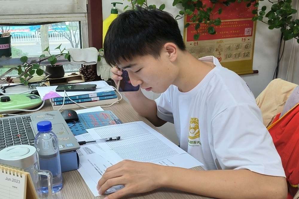 圖為團隊隊員正在進行電話隨訪。通訊員 殷彤彤 供圖