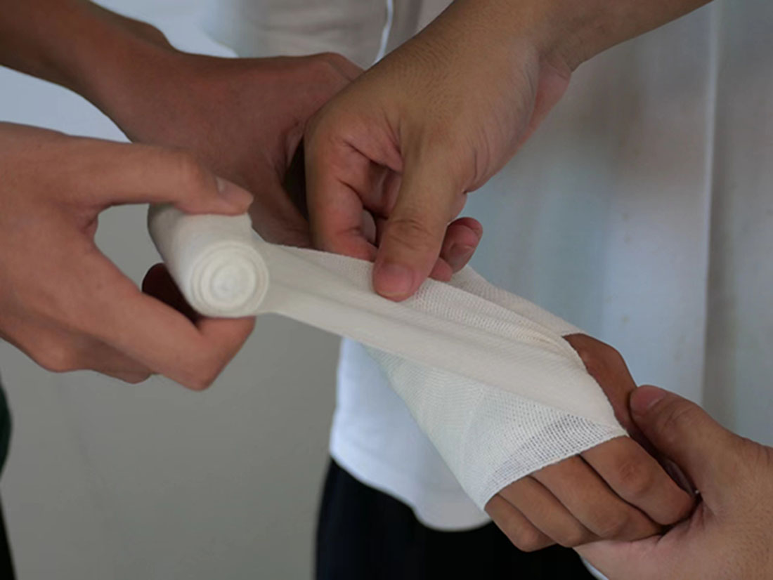 周展藝是嶺南師范學(xué)院體育科學(xué)學(xué)院21級(jí)人體科學(xué)專(zhuān)業(yè)的一名學(xué)生,他日常的訓(xùn)練量非常大,如果沒(méi)有系統(tǒng)的運(yùn)動(dòng)知識(shí)和正確的運(yùn)動(dòng)方式以及科學(xué)的按摩手法,很容易造成肌肉組織損傷,從而對(duì)身體造成不可逆轉(zhuǎn)的傷害。因此他認(rèn)為讓學(xué)生了解運(yùn)動(dòng)損傷知識(shí),學(xué)會(huì)應(yīng)急包扎手法是很有必要。