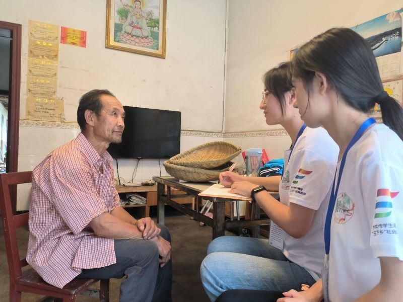 圖為實踐隊員采訪肖友華關于竹編的相關問題。中國青年網通訊員 馬瑗 攝