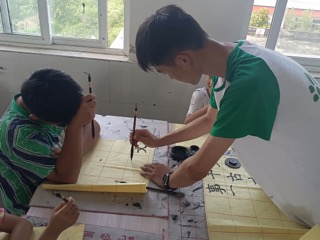 在本次書法課中,團隊成員賈志杰和周旭源為同學們帶來了引人入勝的書法講解課程和書法實踐課程。讓孩子們進一步認識到書法藝術的價值和意義,更加深入地了解到了我國博大精深的傳統(tǒng)文化。