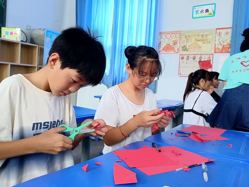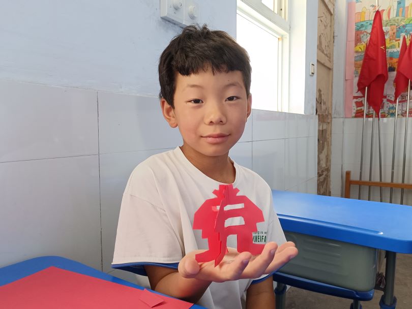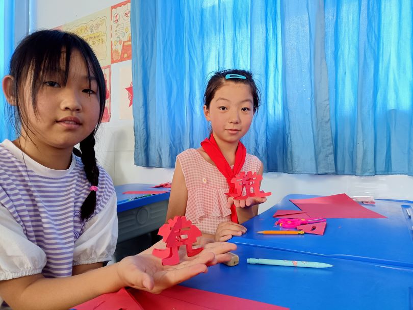 妙手生輝是豫才支教隊的特色課程之一,教師們通過向同學(xué)們講解剪紙歷史文化、傳授基本剪紙技巧、學(xué)生親身實踐等形式開展。在融洽的課堂氛圍中,同學(xué)們均取得了令自己滿意的作品。