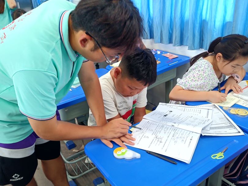 為減輕學(xué)生家長居家輔導(dǎo)作業(yè)的負(fù)擔(dān),依據(jù)學(xué)生的個人知識能力的差異,在遵循學(xué)生學(xué)習(xí)知識內(nèi)在邏輯的前提下,我們對學(xué)生開展因材施教的作業(yè)輔導(dǎo)。豫才支教隊深入學(xué)生,通過“問”“教”“答”等方式解決學(xué)生疑難問題。同學(xué)們在老師的幫助下,對自己的暑期作業(yè)進(jìn)程有了明確的規(guī)劃。
