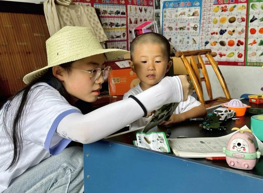 滾滾烈日,阻擋不住與孩子們相約的路,炎炎酷暑融化不了對金沙村深藏的愛,為了豐富留守兒童暑期文化生活,2023年7月10日,重慶幼兒師范高等專科學校“凱風”鄉村振興促進團開展“暖心到家,關愛留守婦女兒童”專項行動。頂著近40度的高溫,“凱風”鄉村振興促進團成員帶上筆墨紙硯、圖畫繪本走進孩子們家里,一筆一畫,一聲一瑟近距離教授孩子們書法,講讀繪本故事,和孩子們一起感受書法的魅力、繪本故事的精彩,陪伴金沙村留守兒童們健康快樂成長。