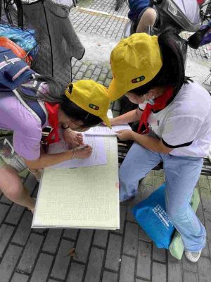 02調(diào)研在街道 一部分成員選擇走訪當(dāng)?shù)亟诸^的商戶、居民以及黨群服務(wù)中心的工作人員,以了解鎮(zhèn)民對藝術(shù)賦能鄉(xiāng)村振興的看法以及他們對此的參與意愿。