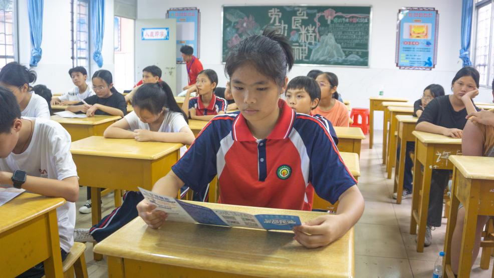 (圖為同學(xué)閱讀宣傳資料。通訊員 鐘嘉鍵 供圖)