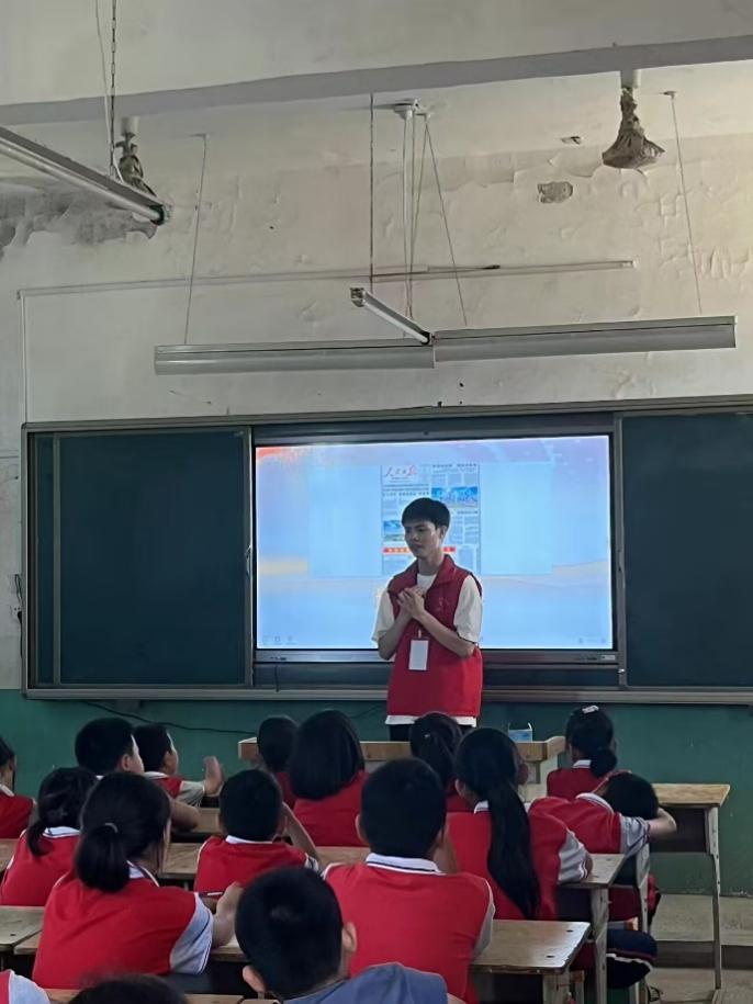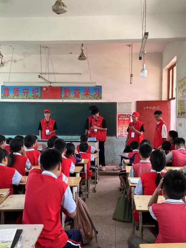在七月初團隊成員去黨政大樓報道,領導為其分配了不同的工作,有路邊“小紅帽”協助交通站崗,有去一些小學幫助學生輔導功課,又去空巢老人家里為他們洗衣收拾。團隊成員和其他幾名同學根據戶籍地被分配到文殊鎮的一所小學,任務就是協助老師教小朋友們學習,照顧他們,并且幫忙整治班級,校園。
