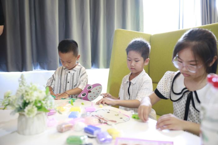 下午時分,在志愿者的帶領下,小學生們來到了眾創空間,共同開展手工創作、彩泥、繪畫等趣味活動。