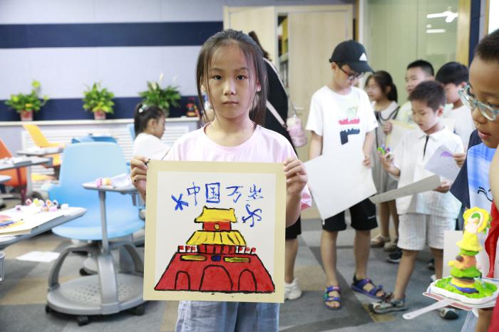 “這是一次奇妙的創作過程,也是一次有趣的藝術體驗,我們用黏土、彩筆來繪畫五星紅旗的魅力,用畫面定格我們與祖國的血肉關系,我們要在這個幸福和平的時代健康成長,弘揚愛國精神,認真學習本領,共同展望美好未來,許下一片滾燙星河。”少先隊員婁桐赫激動地說。