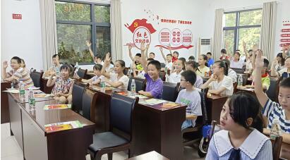 圖為實(shí)踐團(tuán)成員們與小學(xué)生們交流