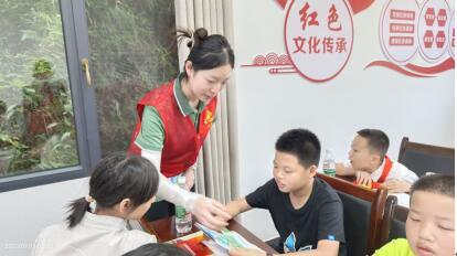 圖為給小學(xué)生們發(fā)放獎(jiǎng)品
