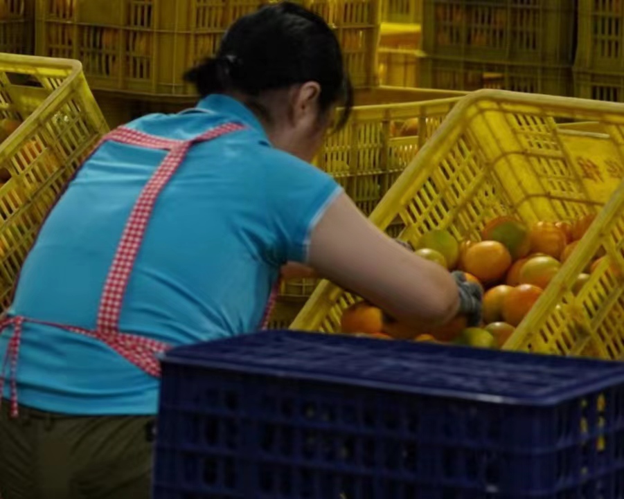 圖為柑橘分揀現場