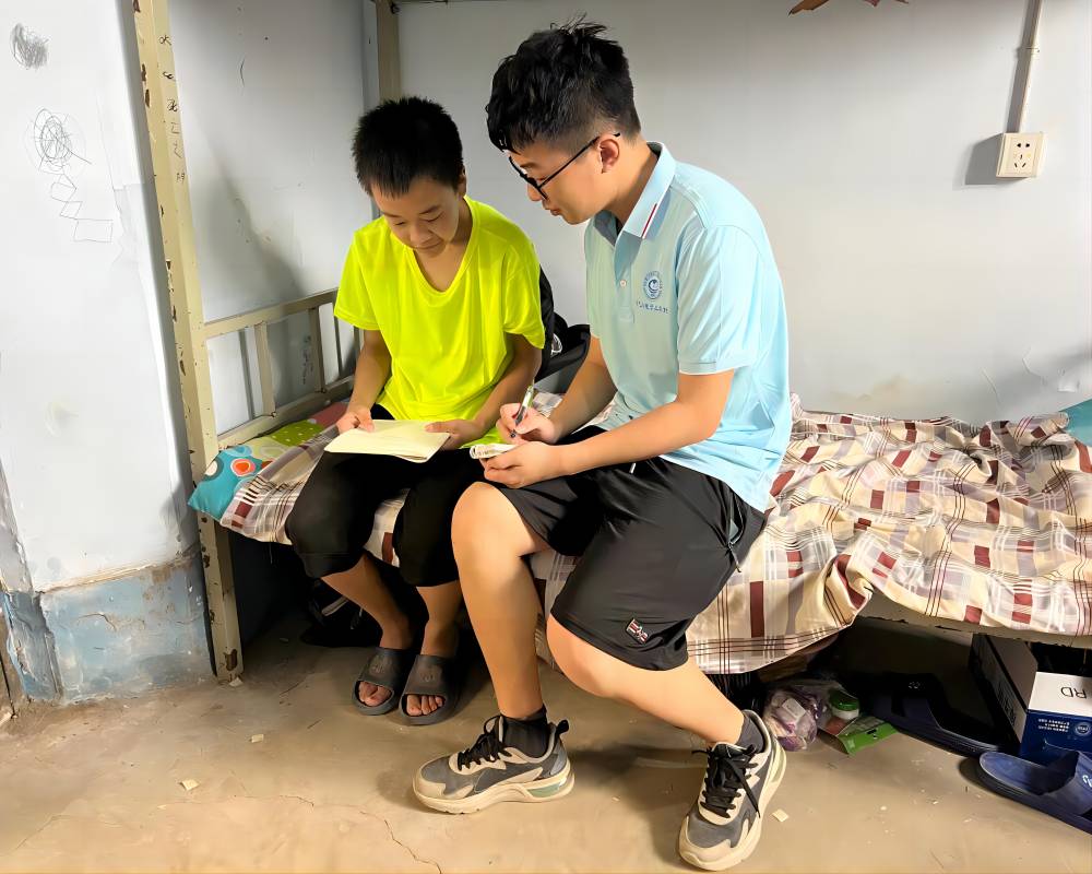 活動伊始,為滿足孩子們學科求知欲,解決學習過程中存在的各項問題,當地部分青少年頂著室外的陽光,攜帶自己的教材資料與筆記本,提前來到社會實踐團成員住宿區域,向實踐團成員主動請教有關學科知識。實踐小組成員鞭辟入里,借助本身對中學課業知識的一定理解,深入剖析有關學科知識點,以通俗易懂的方式對該學科存在的部分疑難知識點進行詳細解答。在進行課業輔導之中,孩子們有說有笑,現場氛圍輕松愉悅,在解決了一個又一個難題的同時,實踐團成員與孩子們的關系得到進一步提高。
