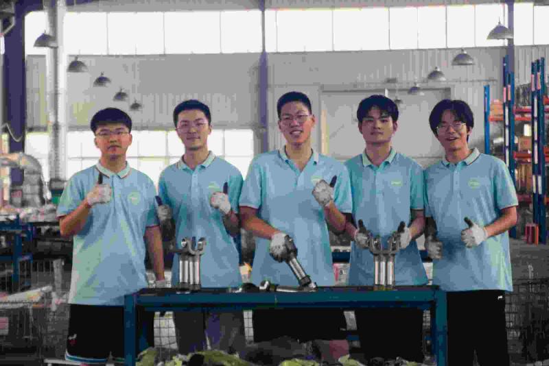 行之愈篤,則知之益明。經過參觀實習,實踐團同學對生產流程有了全面的認識。隨后在楊部長的示范下,同學們躬身實踐,體驗裝配環節:將滑動叉、油封總成、后軸頭、油封蓋等系列零件按照一定順序進行組裝。由于經驗不足,同學們在開始階段遲遲摸不準后軸頭與滑動叉之間的紋路;同時,對于不經常勞作的大學生來說,克服操作沉重的鐵質零件所帶來的疲憊感也成為了一個不小的挑戰。然,工大學子不怕臟累:縱使汗水浸濕隊服隊服,機油布滿雙手,同學們仍保持著工作的熱情,在悶熱的廠房中,在機械運作的轟鳴聲中不斷摸索經驗,嚴謹作業。當目送一筐筐裝配后的零件被叉車運往下一道工序的那一刻,同學們即覺得辛苦也甜進了心頭!
