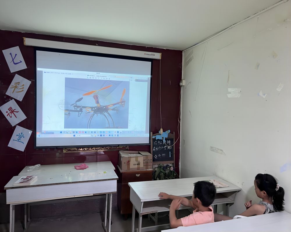 活動(dòng)伊始,實(shí)踐隊(duì)隊(duì)員借助騰訊會(huì)議與山東理工大學(xué)物聯(lián)網(wǎng)實(shí)驗(yàn)室連線,并由該實(shí)驗(yàn)室成員文家銳擔(dān)任線上主講人,通過(guò)介紹物聯(lián)網(wǎng)概念,物聯(lián)網(wǎng)起源引出本堂課內(nèi)容——物聯(lián)網(wǎng)在實(shí)際生活中的運(yùn)用。隨后,主講人分別羅列在各類競(jìng)賽中使用的循跡小車,無(wú)人機(jī),機(jī)械臂等成品,并以孩子們能夠聽懂的知識(shí)加以講解。在授課過(guò)程期間,有不少孩子表現(xiàn)出對(duì)循跡小車等成品的濃厚興趣,并在課后積極向?qū)嵺`團(tuán)成員提問(wèn),隊(duì)員們也耐心地向孩子們答疑解惑,并向他們補(bǔ)充其他科創(chuàng)類知識(shí),并鼓勵(lì)他們今后學(xué)習(xí)有關(guān)專業(yè),在該領(lǐng)域有所建樹。