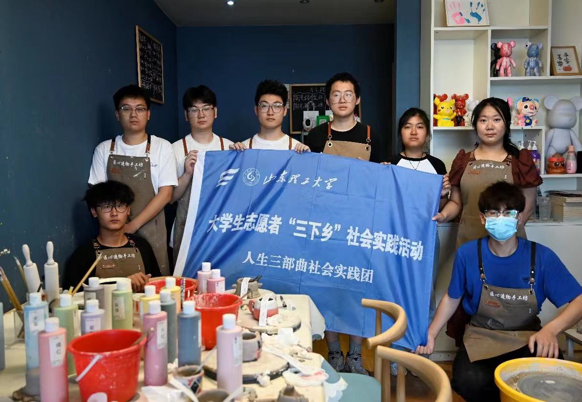 為培養(yǎng)學(xué)生的勞動(dòng)意識(shí),提高學(xué)生的審美能力和創(chuàng)造性思維,7月15日上午,山東理工大學(xué)“人生三部曲”社會(huì)實(shí)踐團(tuán)在指導(dǎo)老師的帶領(lǐng)下,前往淄博市張店區(qū)陶瓷制作體驗(yàn)館,開展學(xué)習(xí)手工制作陶瓷活動(dòng)。