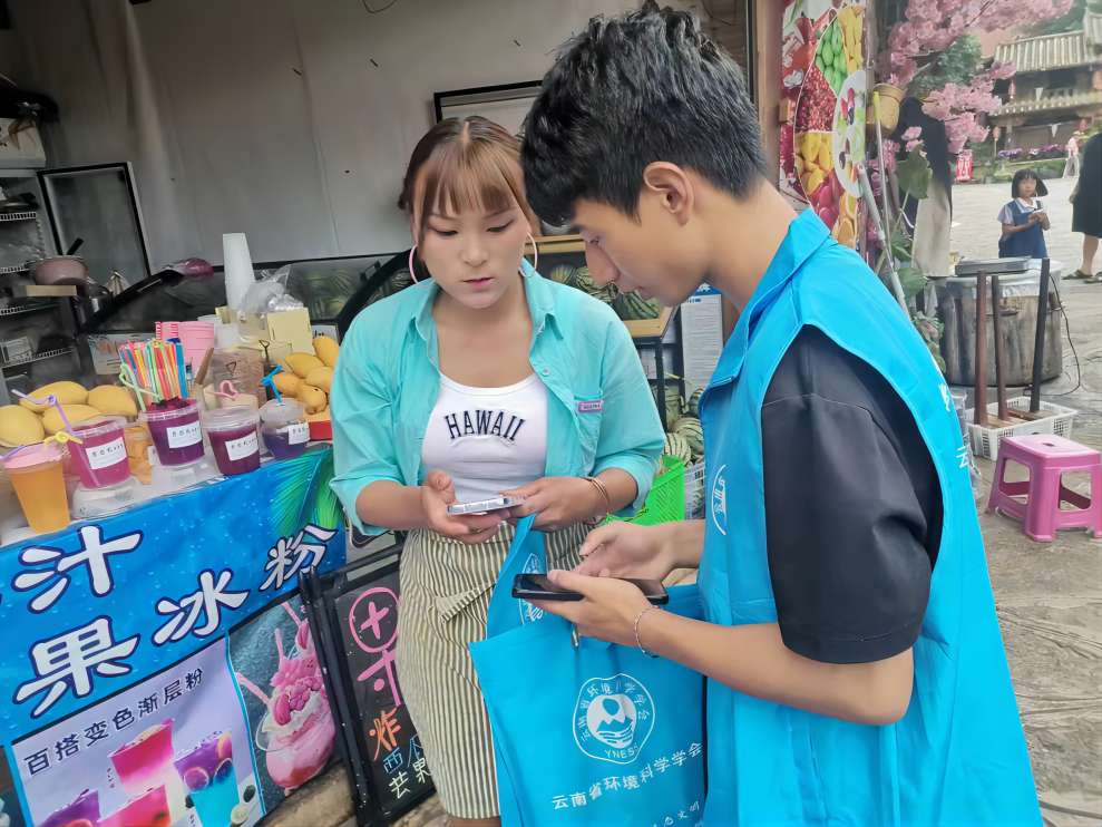 下午,調(diào)研組成員來到丘北縣錦屏鎮(zhèn)聚秀社區(qū)的農(nóng)貿(mào)市場,開展綠色生態(tài)文明建設(shè)調(diào)查。小隊成員在農(nóng)貿(mào)市場內(nèi)及周邊商業(yè)街,通過綠色生活調(diào)查問卷,向其中的農(nóng)產(chǎn)品經(jīng)營者、農(nóng)副產(chǎn)品經(jīng)營者、消費(fèi)者進(jìn)行了關(guān)于生態(tài)文明建設(shè)的問卷調(diào)查與交流。