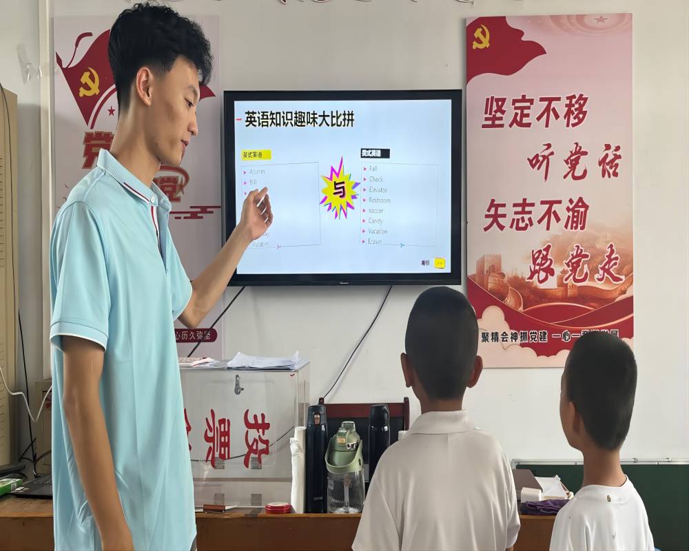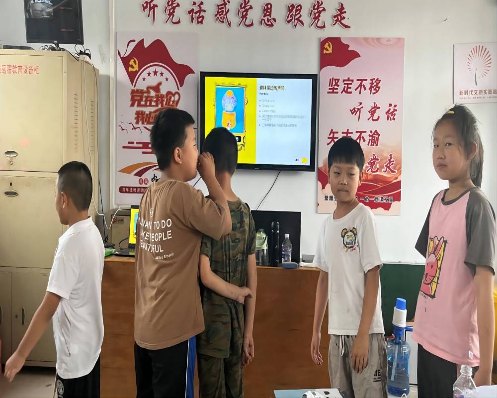 為激發(fā)實(shí)踐地區(qū)孩子們的英語(yǔ)學(xué)習(xí)潛能,培養(yǎng)孩子們課外英語(yǔ)學(xué)習(xí)興趣,增強(qiáng)英語(yǔ)學(xué)習(xí)的趣味性,7月13日下午,山東理工大學(xué)電氣與電子工程學(xué)院“四葉草”暑期社會(huì)實(shí)踐團(tuán)日照實(shí)踐小組于日照市五蓮縣李家溝村開設(shè)趣味英語(yǔ)課堂。