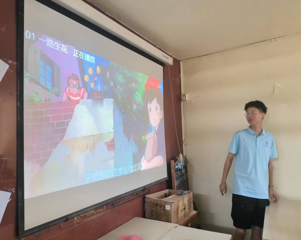 活動(dòng)伊始,隊(duì)員李展鵬借助投影設(shè)備,為孩子們準(zhǔn)備了諸如《學(xué)習(xí)雷鋒好榜樣》等紅色歌曲,但由于當(dāng)時(shí)天氣較為炎熱,且實(shí)踐地缺乏風(fēng)扇,空調(diào)等硬件設(shè)施,孩子們的熱情受外部環(huán)境影響,課堂活躍度較為低迷,縱使主講人盡力帶動(dòng)氣氛,孩子們也呈現(xiàn)出不愿配合的趨勢(shì)。
