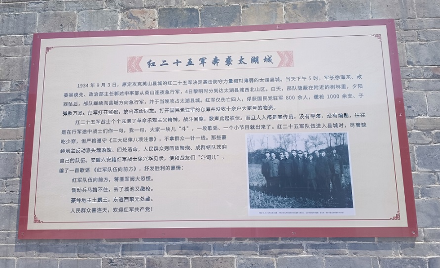 記錄了紅二十五軍奔襲太湖城的牌匾。鄭龍源攝