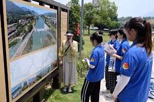 沿著木蘭溪,實踐隊在陳瑞椿的帶領下參觀木蘭溪“十里風光帶”建設工程。“十里風光帶”地處木蘭溪下游平原段,是習近平總書記當年親自參加木蘭溪防洪工程開工建設的河段。陳瑞椿跟實踐隊員們分享到:“這里是口袋公園,真正實現了家門口的詩和遠方。形成了習近平生態文明思想的全域生動展示。”