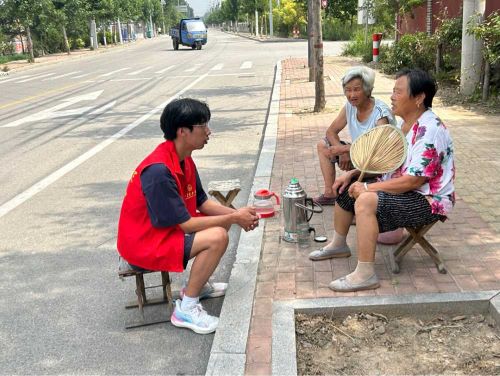 圖為實踐團成員與曹植墓附近村民交流采訪對曹植的認識。通訊員 崔佳慧 攝