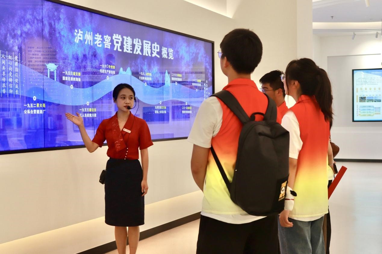 在參觀學習的過程中,實踐隊帶隊老師劉春玲就黨建如何引領企業革新、發展與瀘州老窖企業文化中心工作人員景俊鑫以及黨群服務中心講解員進行了更深入的交流探討,通過觀看瀘州老窖黨建工作宣傳視頻、Ai紅色經典我來演、知識測試大PK等實踐體驗活動,實踐隊成員充分感受了瀘州老窖的文化傳承和酒旅融合發展,深刻領悟了瀘州老窖在黨建引領下推進企業發展、科技創新所取得的突出成效和寶貴經驗。