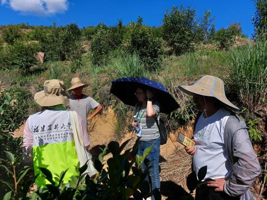 圖為實踐隊員、科技特派員與林業局工作人員交流討論。 雷雪勤 攝