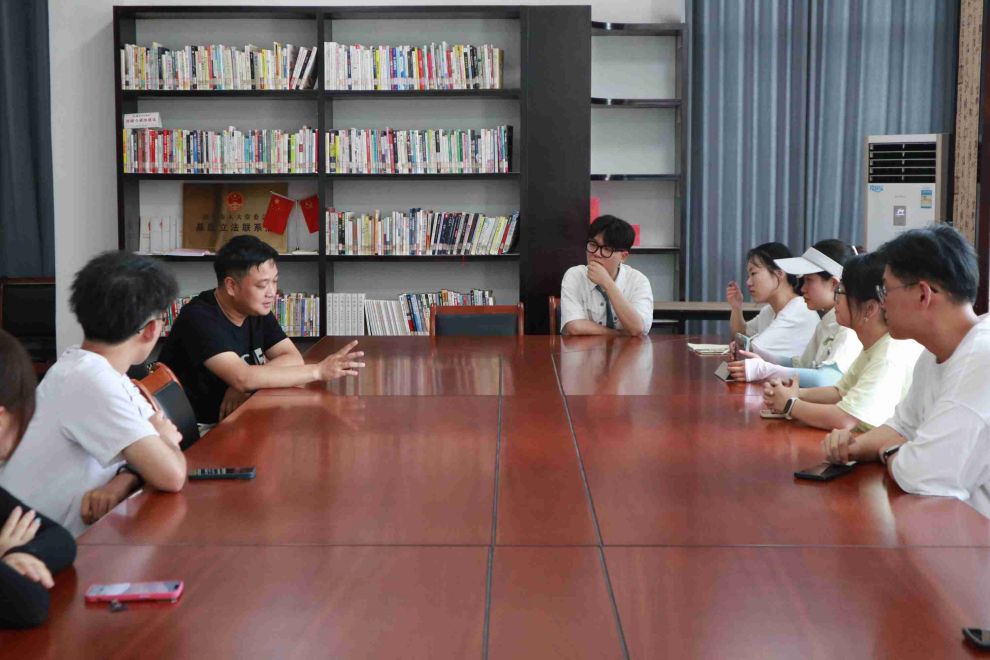 講解完畢后實踐團成員就醫療健康、垃圾分類、污水治理、排水系統、人才引進、招商引資等內容進行針對性提問、細節性了解。