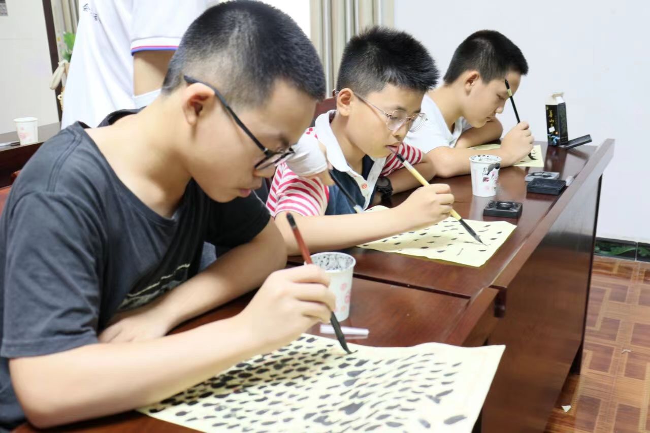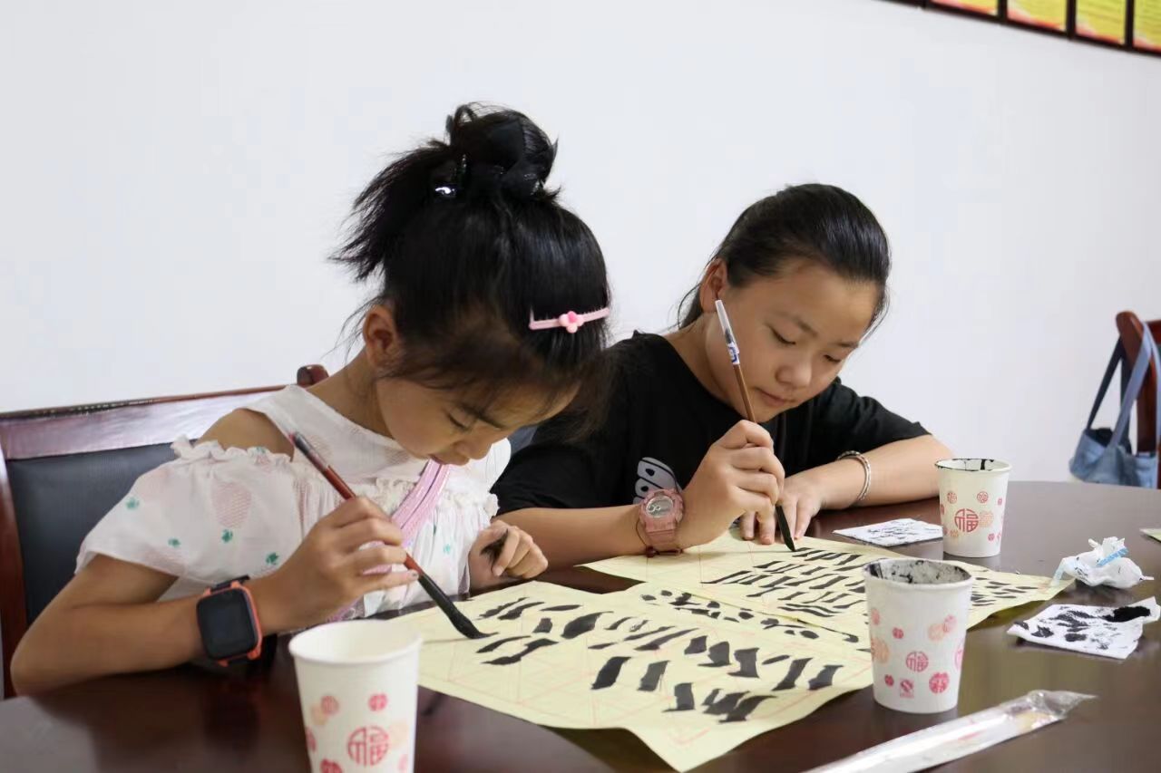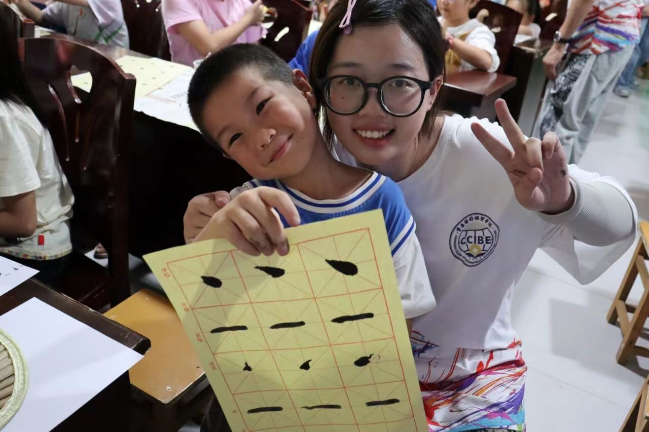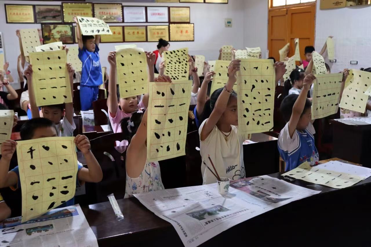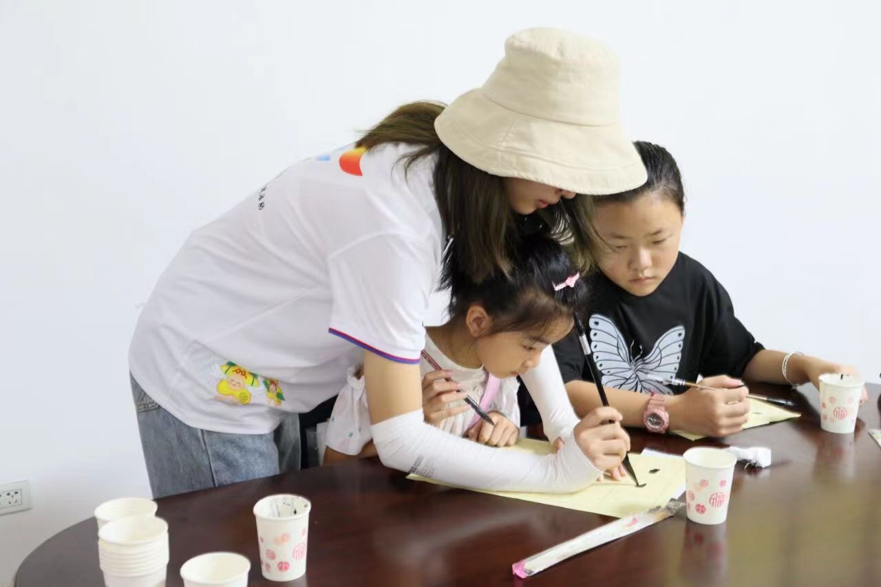 (通訊員 李玢劼 巫鑫蕊 熊婧瑜)書法是中國上下五千年來的優秀文化傳統,它與中國文化相表里,與中華民族精神成一體,有著深厚的文化內涵,它以漢字為載體,涉及語言、文學、美學等方面,又與音樂、美術相通。重慶對外經貿學院藝術設計學院“齊心合力 繪夢太和”創藝鄉村振興促興團于7月8日在合川區太和鎮絲綢園社區以及馬門溪社區為當地的小朋友們開展有關傳承中華民族優秀文化書法的美育實踐課堂。
