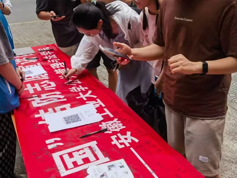 圖為安徽工業(yè)大學(xué)學(xué)生參加“防治結(jié)核”簽名征集活動(dòng) 通訊員趙家泰 攝