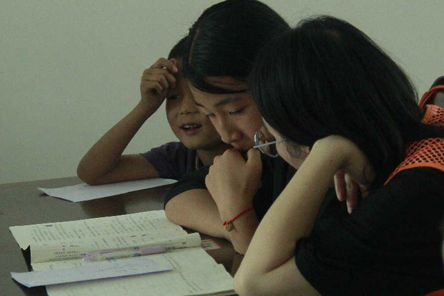 圖為隊(duì)員和小朋友們正在討論作業(yè)問題。 楊海 攝