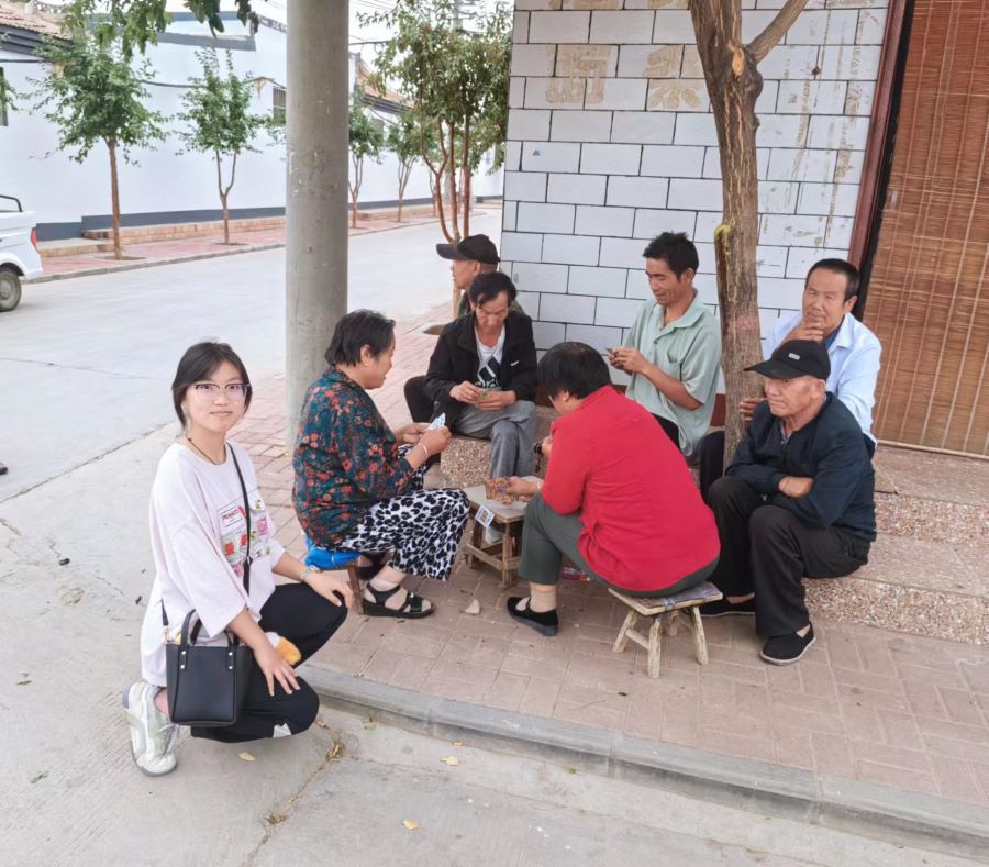 圖為志愿者與當地村民交流。李夢恬 攝