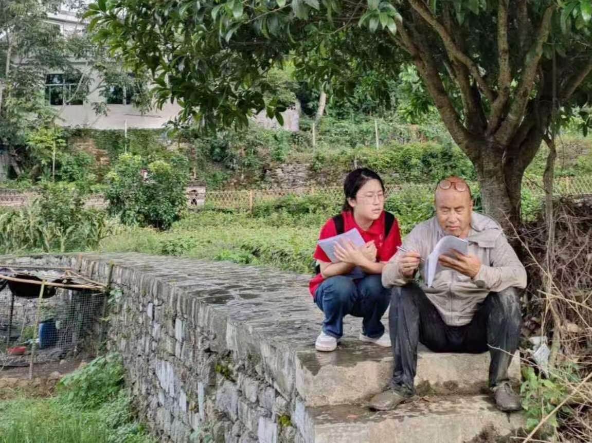 圖為團隊成員鄧婷婷訪談菖蒲塘唐金生書記片段 通訊員 周思 攝